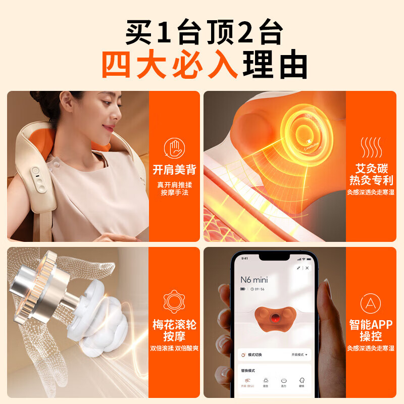 倍轻松(breo)N6mini 颈椎按摩器按摩披肩肩颈按摩器斜方肌腿腰颈部按摩仪器 生日节日礼物价格:999.00元!