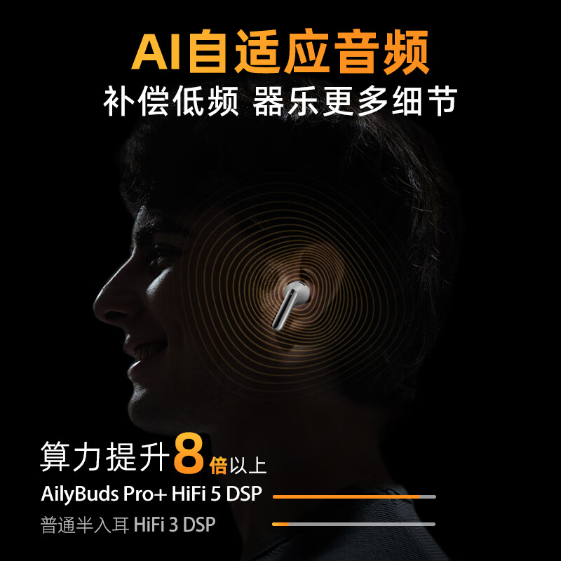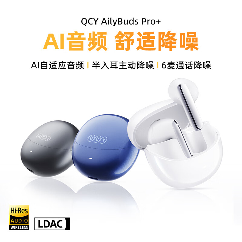 QCYAilyBuds Pro+ 真无线蓝牙耳机双金标版 半入耳主动降噪 游戏运动耳机 高解析音质 小Q豆 黑色价格:209.00元!