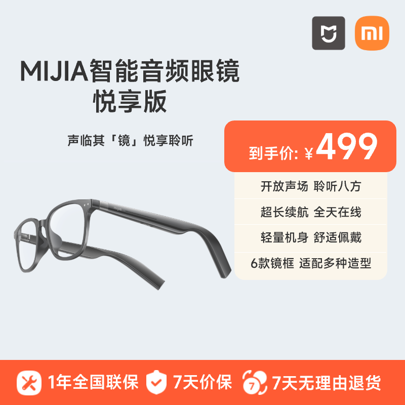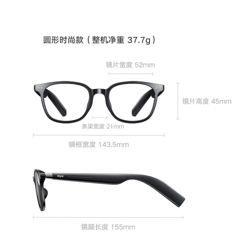 小米(MI)mijia智能音频眼镜 悦享版 开放式耳机小米蓝牙耳机非骨传导 圆形时尚款价格:499.00元!