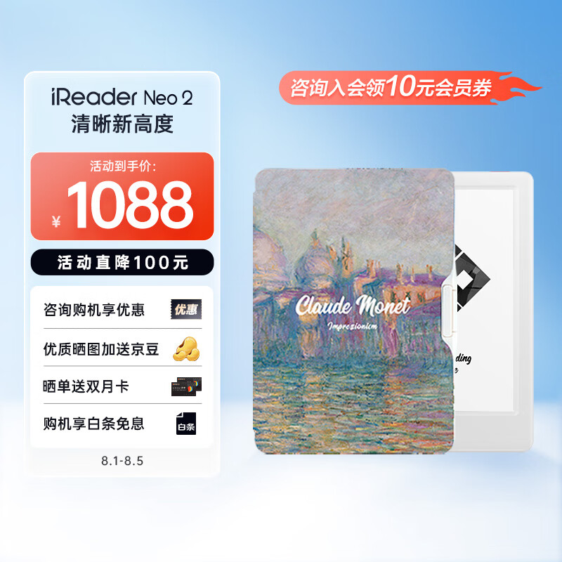 掌阅iReader Neo2 6英寸 电子书阅读器 墨水屏电纸书 平板学习笔记本 轻量便携32GB 告白 莫奈运河套装价格:1088.00元!