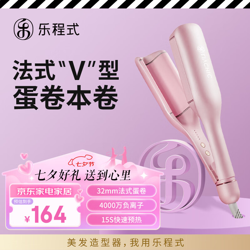 乐程式蛋卷卷发棒 水波纹法式蛋蛋卷卷棒32mm大卷 懒人卷发神器 4000w负离子护发夹板 牡丹粉价格:164.00元!