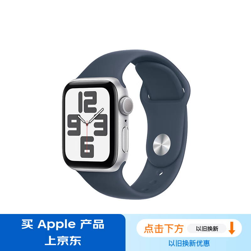 Apple/苹果 Watch SE 2023款智能手表GPS款40毫米银色铝金属表壳风暴蓝色运动型表带S/M MRE13CH/A价格:1999.00元!