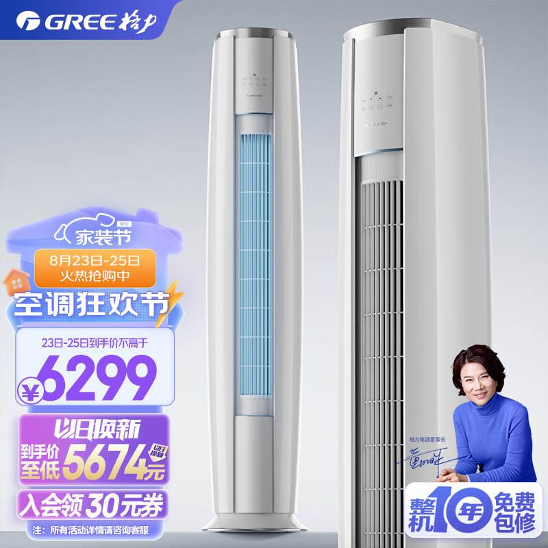 格力(GREE)空调 京东小家智能生态 2匹 云锦-Ⅱ新1级能效 客厅空调立式空调柜机 格力空调KFR-50LW/NhAg1BAj价格:6299.00元!