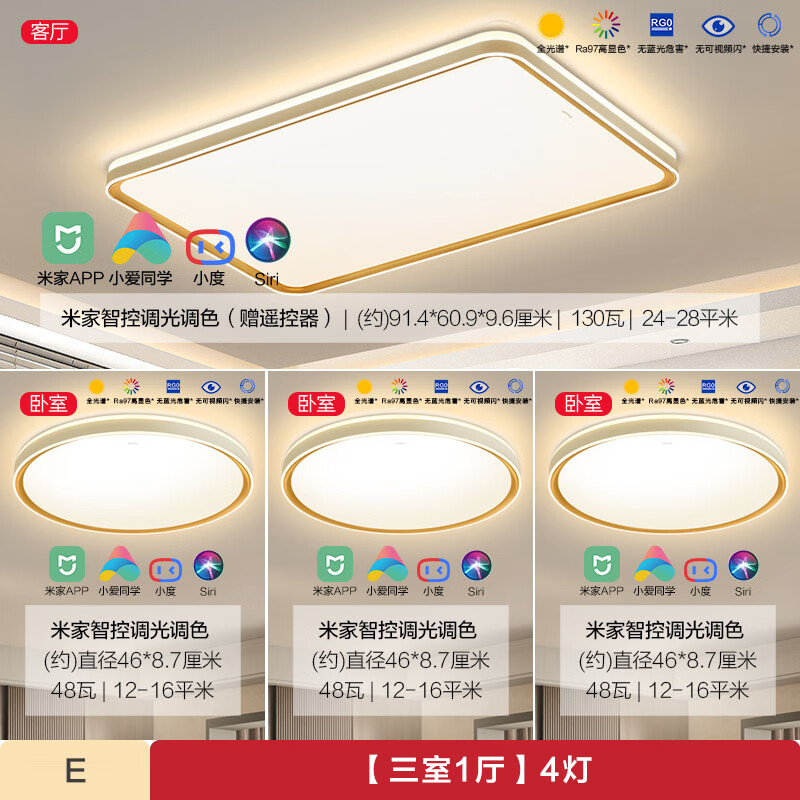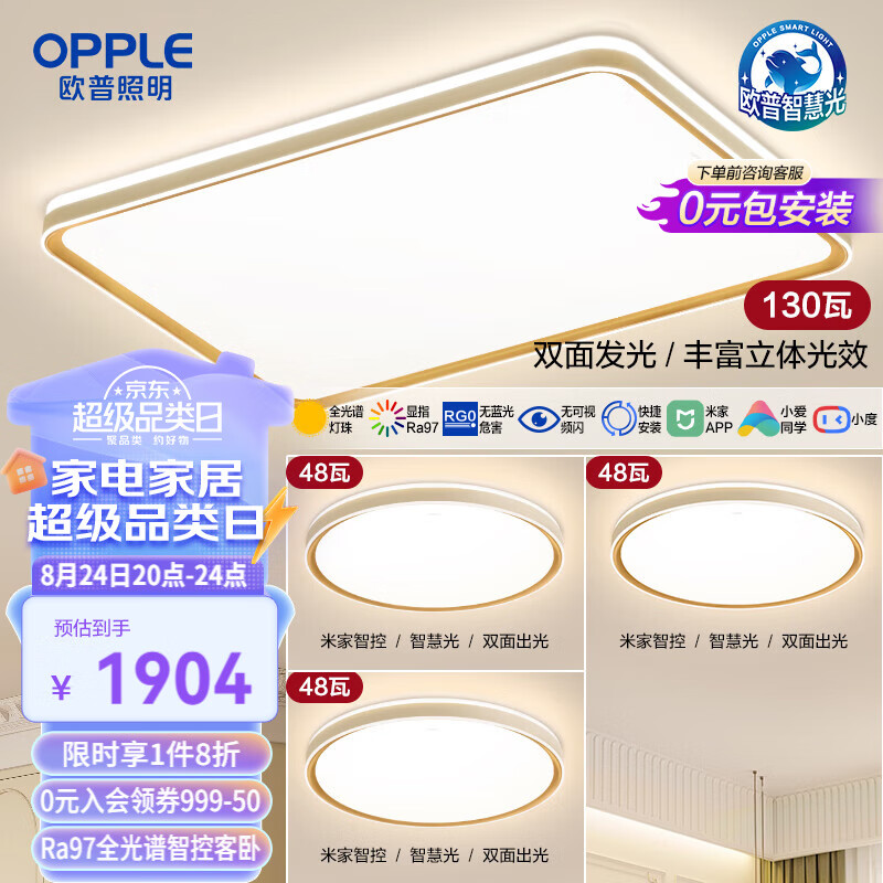 欧普(OPPLE)护眼全光谱吸顶灯客厅灯智能LED照明简约现代大气灯具套餐5智慧光价格:2380.00元!