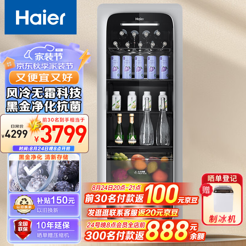海尔200升家用客厅办公室冷藏柜暖藏冰吧能量吧茶叶饮料水果蔬菜保鲜柜小型冰箱冰河银LC-200WLH9ES1价格:3899.00元!