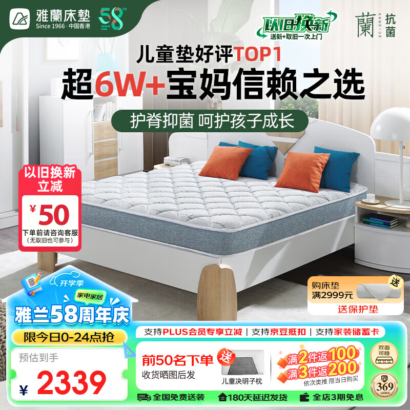 雅兰抑菌面料进口乳胶黄麻床垫 独袋弹簧学生床垫 蘭精灵 1.5*1.9米价格:3839.00元!