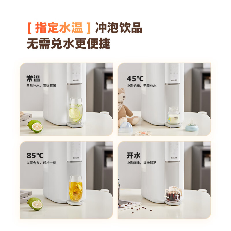 飞利浦(PHILIPS)加热净水器 家用即热饮水机 RO反渗透台式直饮水机 免安装净水机 净饮一体机ADD6815价格:1299.00元!