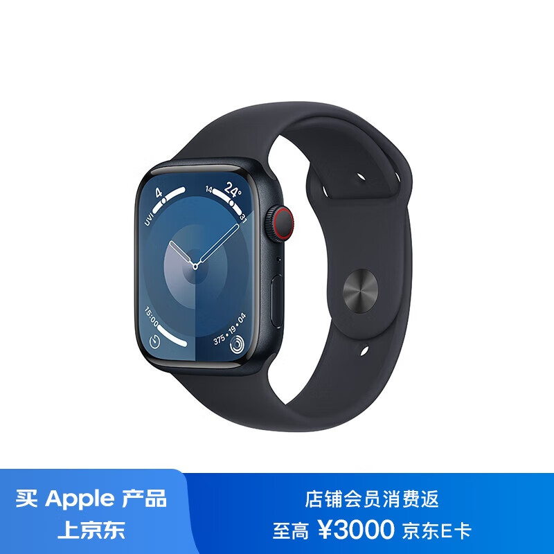 Apple Watch Series?9(GPS+蜂窝网络);45?毫米午夜色铝金属表壳;午夜色运动型表带-M/L MRP63CH/A*企业专享价格:3999.00元!