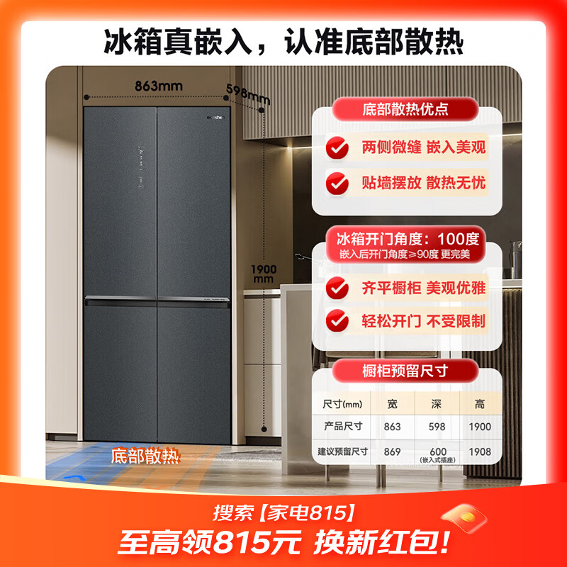 容声(Ronshen)510升变频一级能效十字对开门四开门电冰箱家用风冷无霜BCD-510WSK1FPCZA价格:7999.00元!