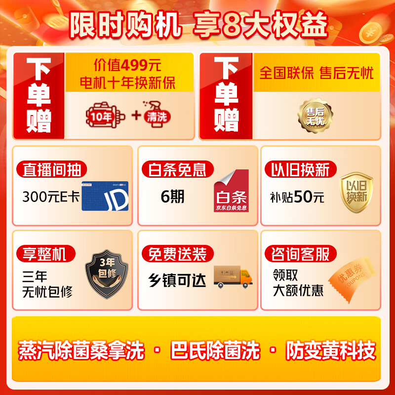 美的(Midea)滚筒洗衣机全自动 超薄机身560mm 巴氏除菌 BLDC变频 蒸汽除菌桑拿洗 MG100V11F 简尚系列 10公斤价格:1499.00元!