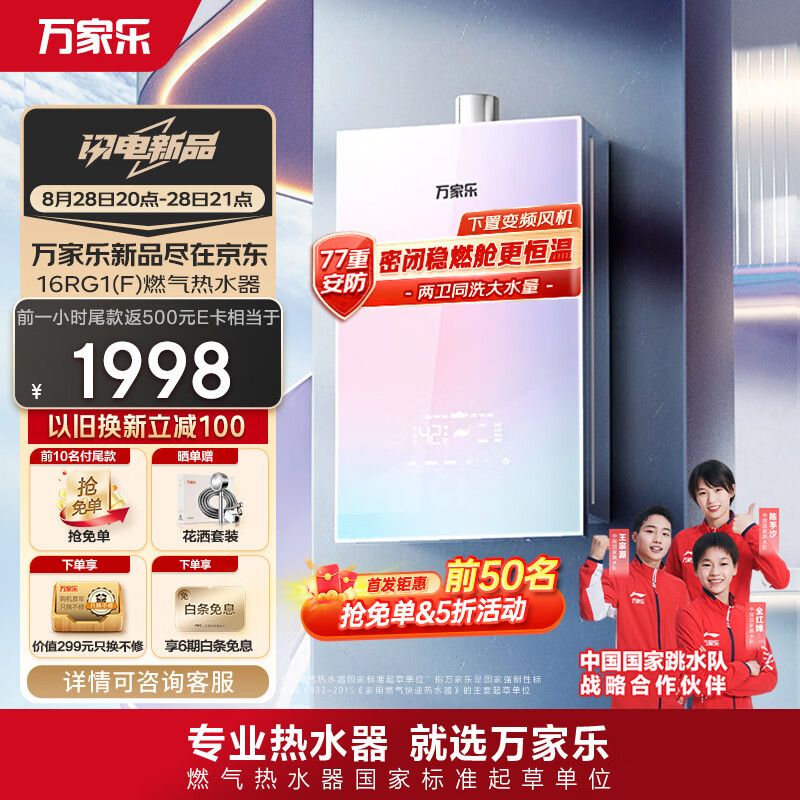 万家乐16升燃气热水器天然气下置风机密闭稳燃舱增容全景玻璃屏【彩虹系列】 以旧换新JSQ30-16RG1(F)价格:2698.00元!