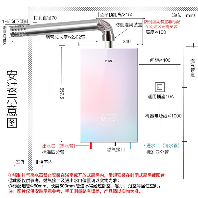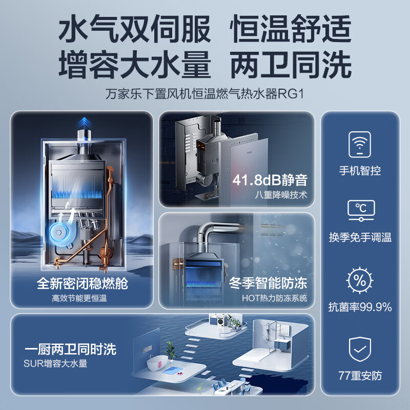 3、家里之前一直用的万家乐,用了十几年了,这次回购还是相信国货万家乐。我家位置有限,正好这款满足了我所有需求,娇小精致,颜值高,关键声音的真好小。安装后师傅帮我试了下,出热水很快,心情美美哒,太喜欢了!!!强烈推荐。