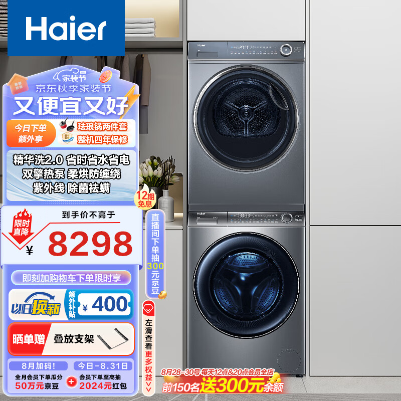 海尔(Haier)云溪176PLUS洗烘套装 10KG精华洗滚筒洗衣机全自动+双擎热泵烘干机家用 176PLUS+176XS 以旧换新价格:7998.00元!