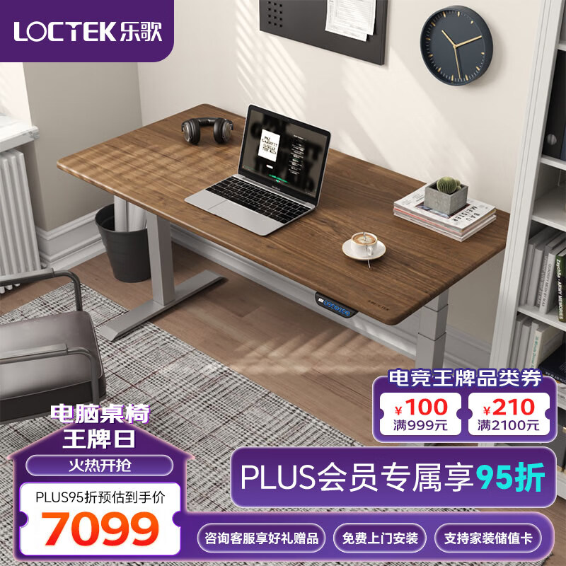 乐歌电动升降桌电脑桌办公桌书桌学习桌 E5-N/1.6m 实木黑胡桃木套装价格:8325.00元!