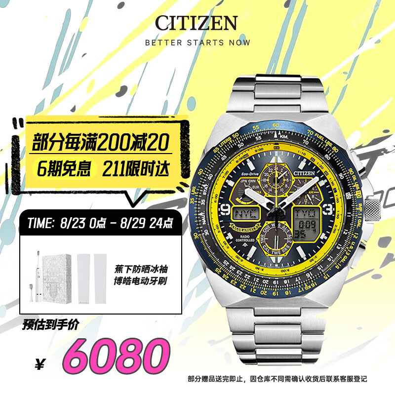 西铁城(CITIZEN)手表男日韩表蓝天使光动能日显钢带时尚送送礼物JY8125-54L价格:6740.00元!