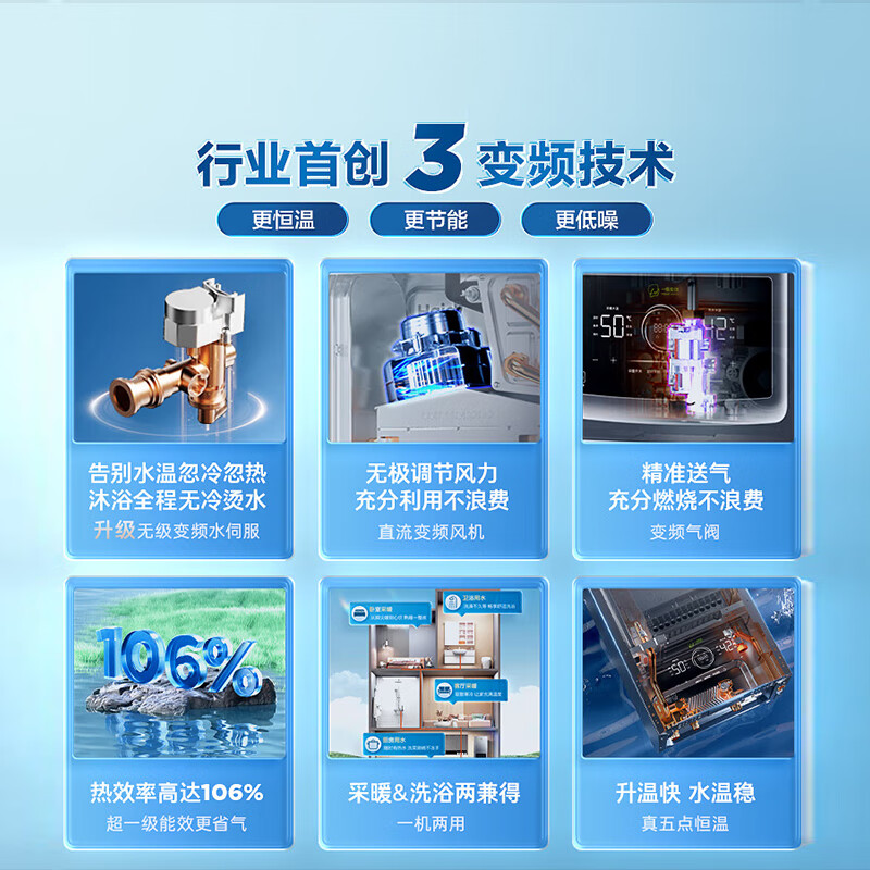 1、原来的锅炉一会热一会冷的,每次用水声音都超级大,开地暖很久都不暖,换了海尔这一款很静音,关了厨房门基本没声音,热水也来的很快,地暖几个小时就暖和了,外观也好看。推荐!