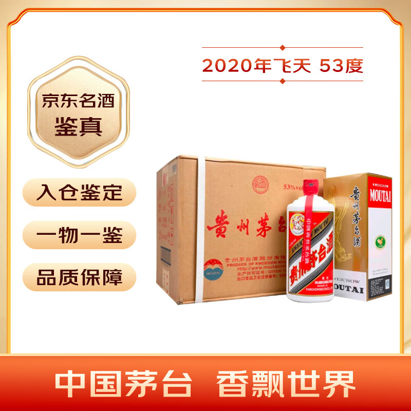 茅台(MOUTAI)2020年 飞天 酱香型白酒 53度 1000ml*6 整箱装【名酒鉴真】价格:33354.00元!