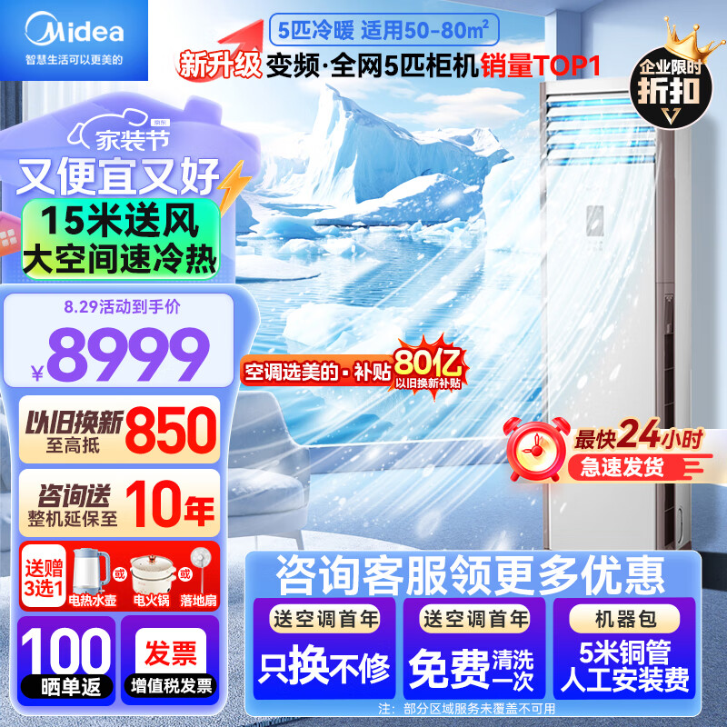 美的(Midea)中央空调5匹柜式空调 5p商用柜机立式 冷暖新能效变频380V RFD-120LW/BSDN8Y-PA401(B3)A包5米铜管价格:8799.00元!