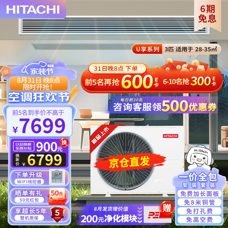 日立(HITACHI)中央空调风管机一拖一U享3匹家用嵌入式空调一价全包1级能效冷暖全直流变频京仓发货RPIZ-72HDQ1/P价格:8799.00元!