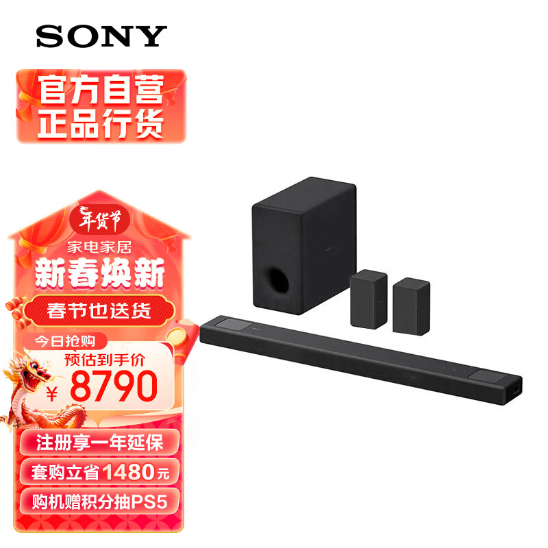 索尼(SONY)HT-A5000+SW3+RS3S 环绕套装 7.1.2 全景声 360智能穹顶 4K/120Hz 回音壁 家庭影院 电视音响价格:8790.00元!