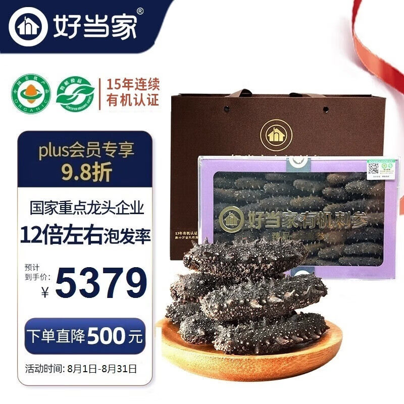 好当家 威海有机干海参 500g 约81-100只 中秋礼盒装 海产干货价格:5379.00元!