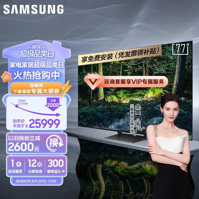 三星(SAMSUNG)77英寸 3+32G OLED屏电视 4K超高清HDR 无开机广告 AI智能语音助手QA77S95ZAJXXZ价格:25999.00元!