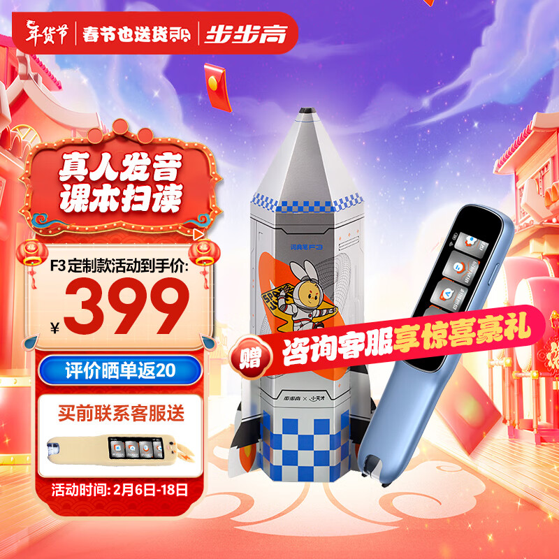 步步高词典笔F3 小天才联名礼盒 点读笔扫描笔翻译笔 学习机电子词典 小学生专属课本同步扫读翻译机价格:399.00元!