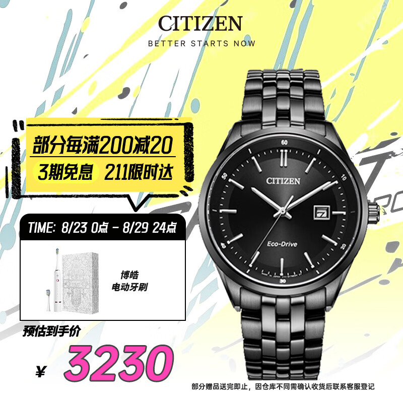 西铁城(CITIZEN)手表男日韩表Eco-Drive光动能钢带商务送礼物BM7565-80E价格:3230.00元!