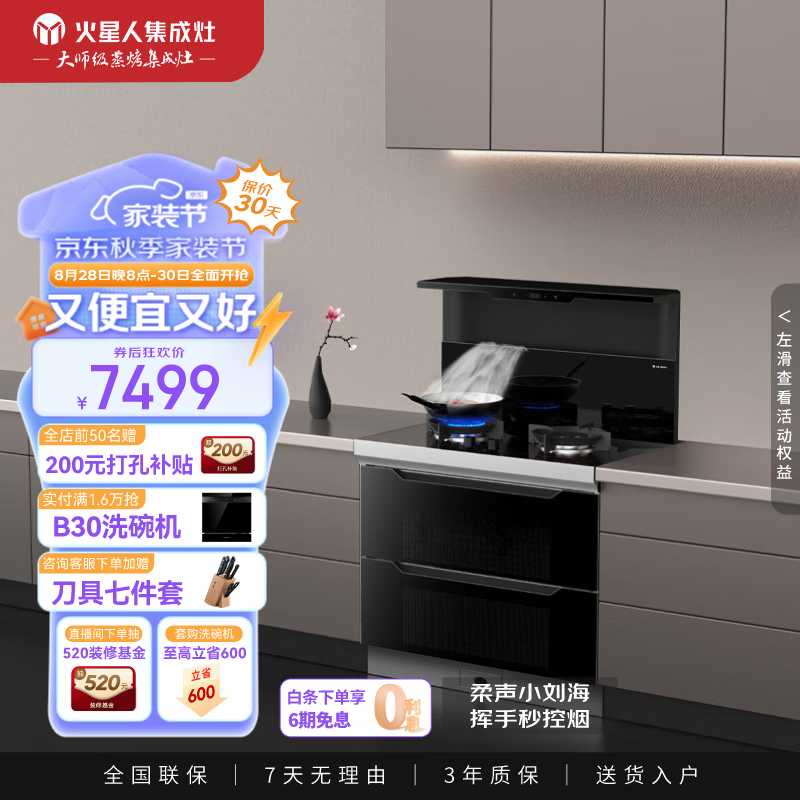 2、火星人集成灶这个价格做活动,挺实惠的,也看了一段时间,功能是真的强大,使用起来非常方便,无死角好清洁,爆炒油烟轻松解决,厨房就不会弄得乌烟瘴气了。