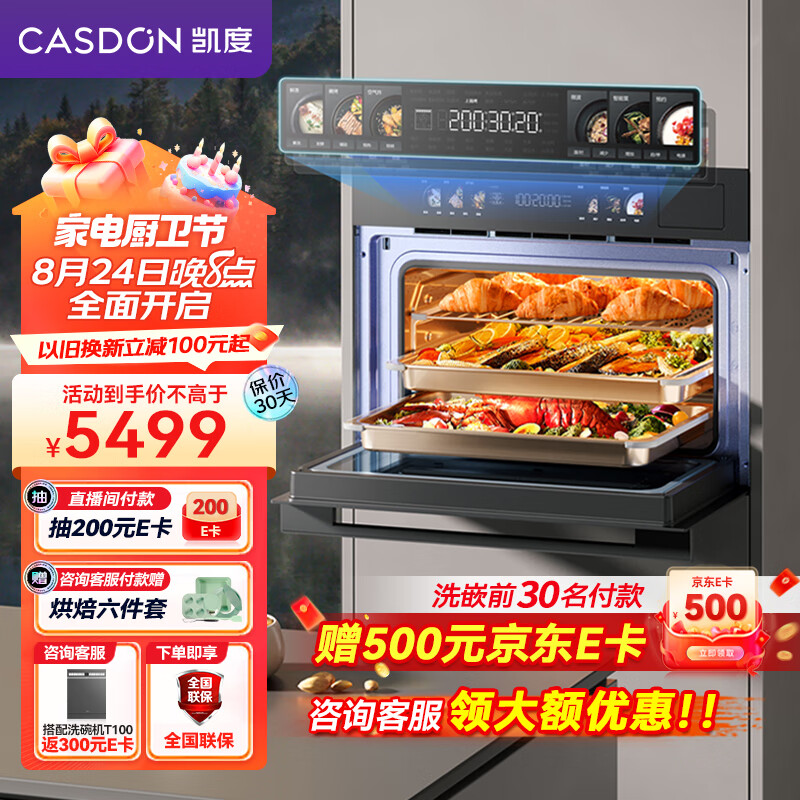 凯度(CASDON)52L嵌入式微蒸烤 双热风 微蒸烤炸炖5合1 WIFI智控 变频微波 蒸烤箱一体机 SR52BW1-GRPro价格:5498.00元!