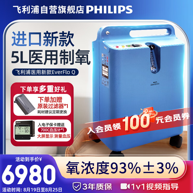 飞利浦(PHILIPS)5L升医用制氧机进口吸氧机家用老人孕妇氧气机EverFlo Q价格:7380.00元!