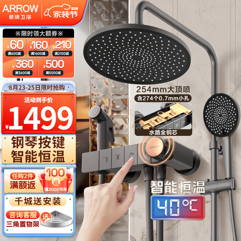 箭牌(ARROW) 淋浴花洒套装增压花洒全套莲蓬头淋雨器套装浴室花洒按键花洒 【枪灰色】按键丨恒温款价格:1959.00元!