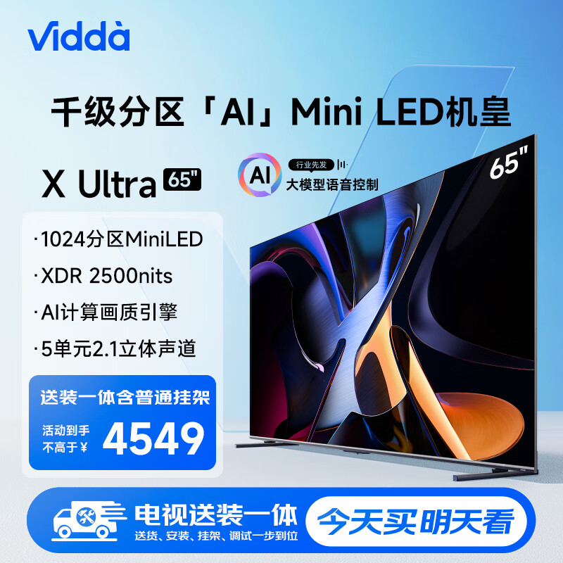 Vidda X Ultra 65英寸【送装一体版】海信 1024分区Mini LED 2500nits 144Hz 大屏以旧换新65V7N-Ultra价格:4548.00元!