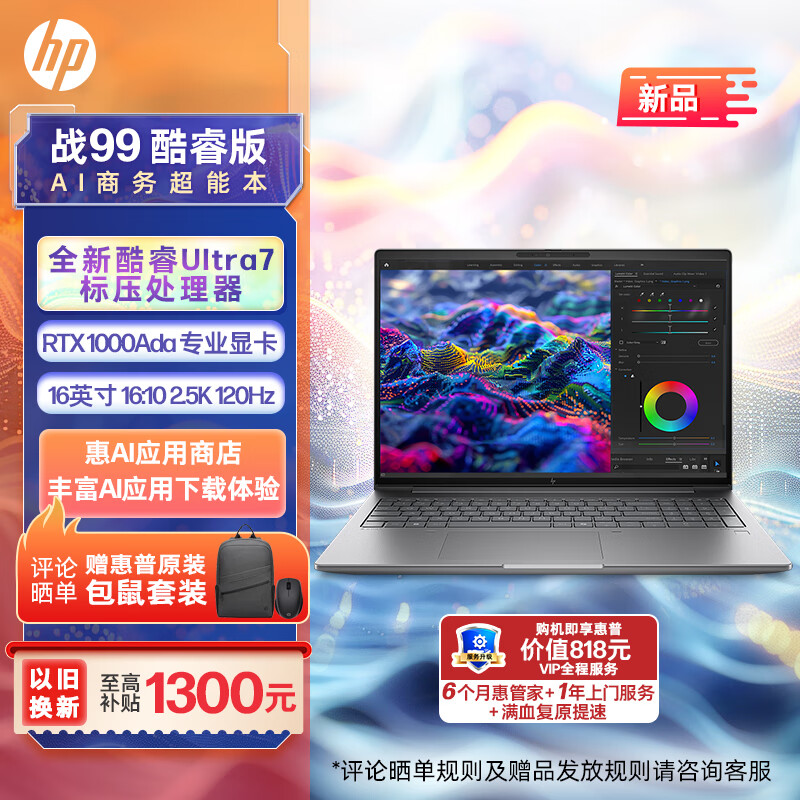 惠普(HP)战99 24款酷睿标压高性能笔记本AI电脑工作站 16英寸Ultra7 155H 32G 1TSSD RTX1000Ada 2.5K屏价格:12999.00元!