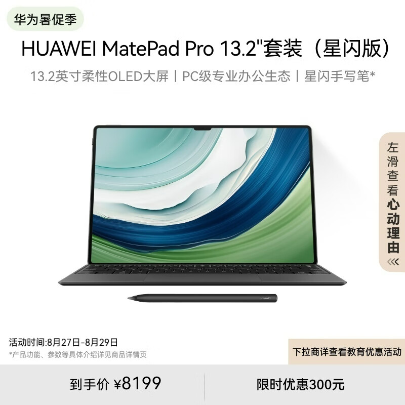 HUAWEI MatePad Pro 13.2英寸华为平板电脑2.8K屏144Hz办公创作学习16+1TB曜金黑 含星闪键盘+星闪笔价格:8199.00元!