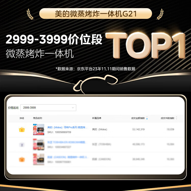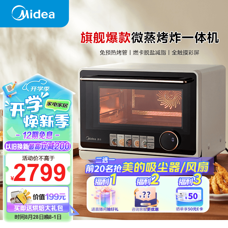 美的(Midea)寻味Pro系列 微蒸烤炸台式一体机 家用变频微波炉 空气炸蒸烤箱电烤箱 304不锈钢内胆 杏色(G21)价格:2799.00元!