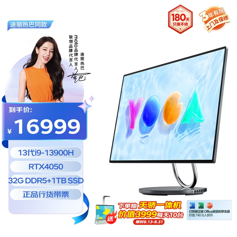 联想(Lenovo)Yoga Air 32 31.5英寸4K屏一体台式机电脑(酷睿13代i9-13900H RTX4050 独立显卡32G 1TB SSD )价格:16999.00元!