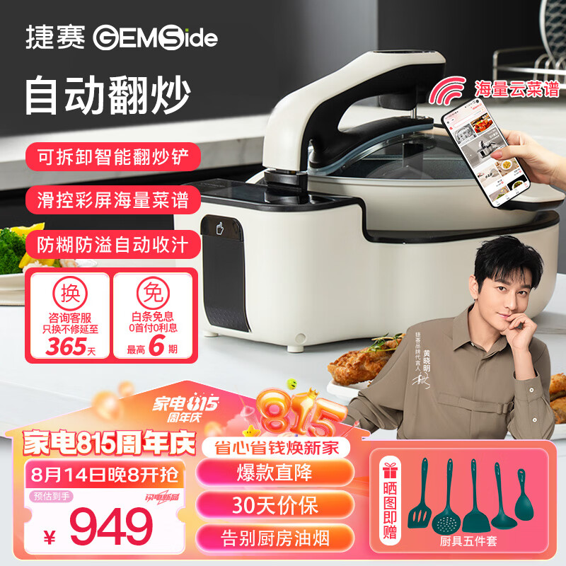 捷赛全自动智能炒菜机 多功能智能烹饪锅家用自动炒菜机器人无油烟不糊锅可定时预约LWOK-DW30米白价格:949.00元!