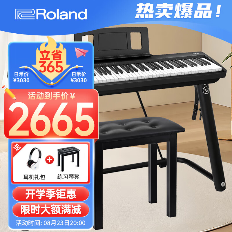 罗兰(Roland)考级智能初学88键重锤电钢琴FP18主机+时尚U架+单踏板+套装礼包价格:3030.00元!