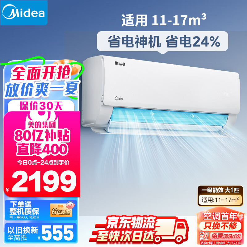 美的(Midea)空调 大1匹 酷省电 新一级能效 变频冷暖 壁挂式空调挂机 智能家电 KFR-26GW/N8KS1-1价格:2199.00元!