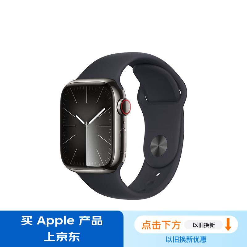 Apple/苹果 Watch Series 9 智能手表GPS+蜂窝款41毫米石墨色不锈钢表壳午夜色运动型表带M/L MRM43CH/A价格:5799.00元!