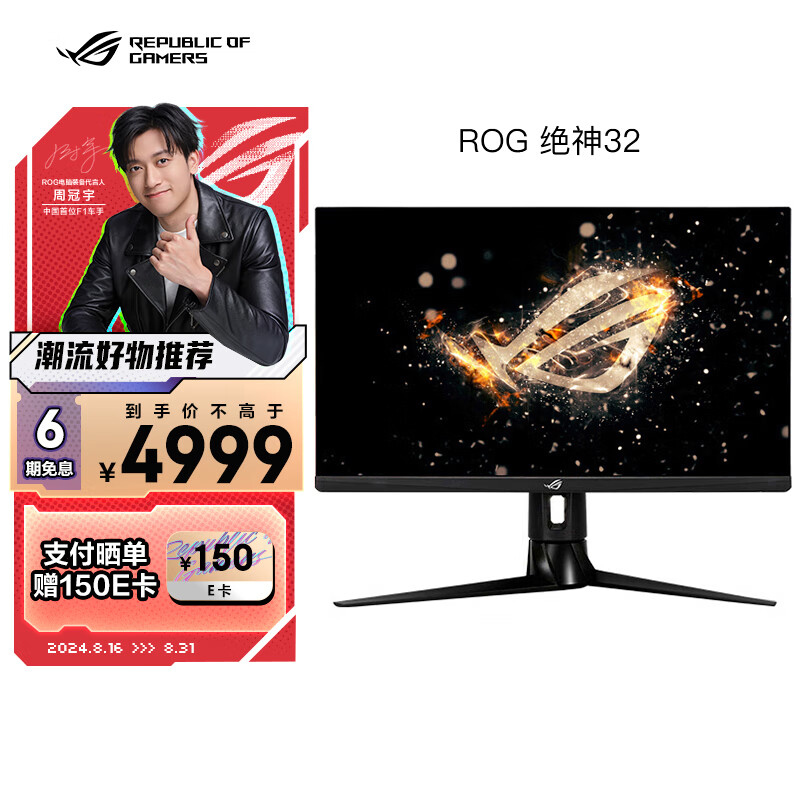 华硕ROG XG32UQ绝神 32英寸4K 144Hz显示器电竞显示器超频160Hz FastIPS G-Sync HDR600 HDMI2.1价格:4999.00元!