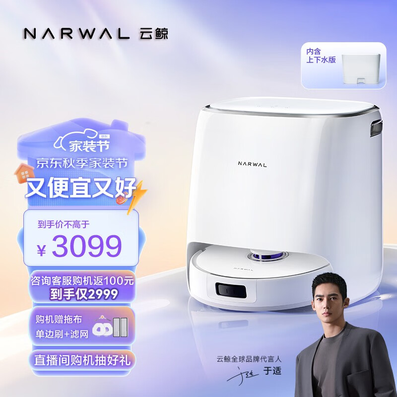云鲸扫地机器人J4 Lite 扫拖一体自动清洗全自动集尘洗烘拖布 智能家用吸尘器拖地机擦地机 上下水套装价格:3099.00元!