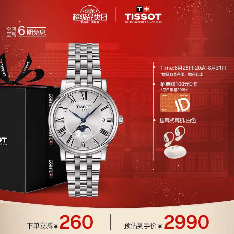 天梭(TISSOT)瑞士手表 卡森臻我系列腕表 钢带石英女表 T122.223.11.033.00价格:3250.00元!