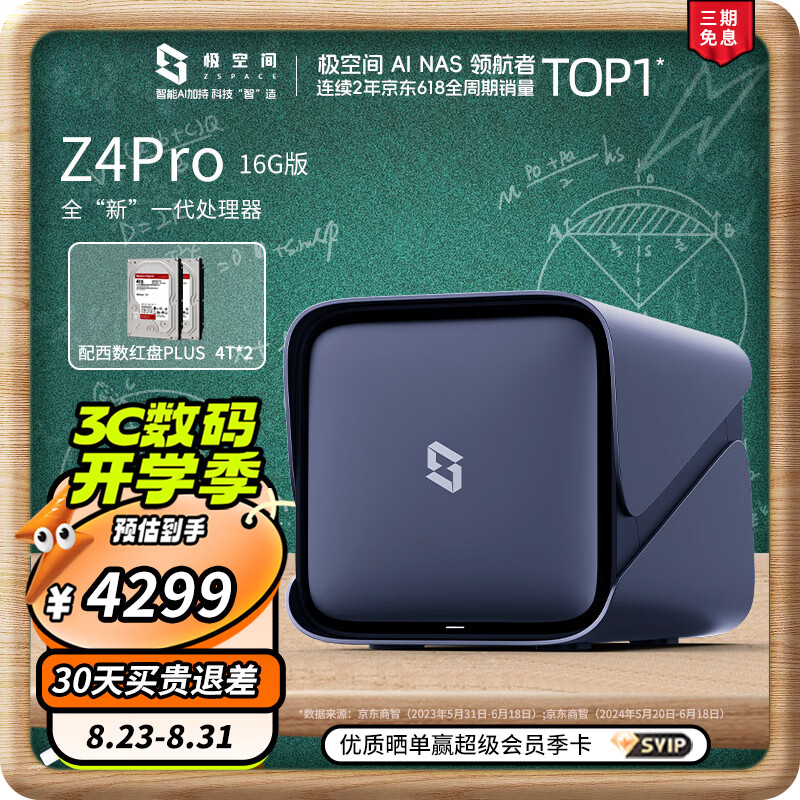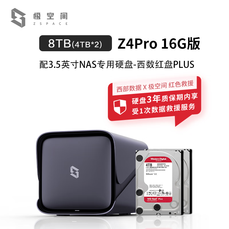 极空间私有云8TB Z4Pro 16G版四盘位Nas网络存储家庭个人云相册备份文件同步手机平板扩容价格:4699.00元!