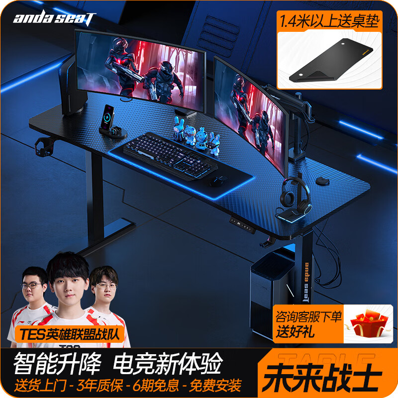 andaseaT安德斯特电脑桌电竞桌台式家用办公书桌子 未来战士电动升降1.6米价格:1999.00元!