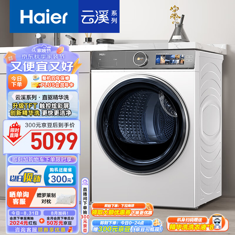 海尔(Haier)滚筒洗衣机全自动 云溪386W 家用10公斤【直驱精华洗XQG100-BD14386WTLU1】超薄内衣洗 以旧换新价格:5399.00元!