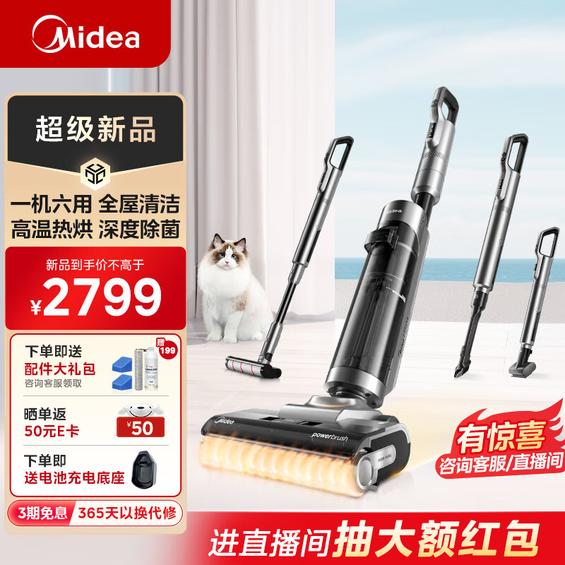 美的(Midea)三合一洗地机G9Pro【一机五用高温洗烘】洗拖吸一体全自动清洗 三贴边家用拖地机 180度平躺吸尘器价格:2799.00元!
