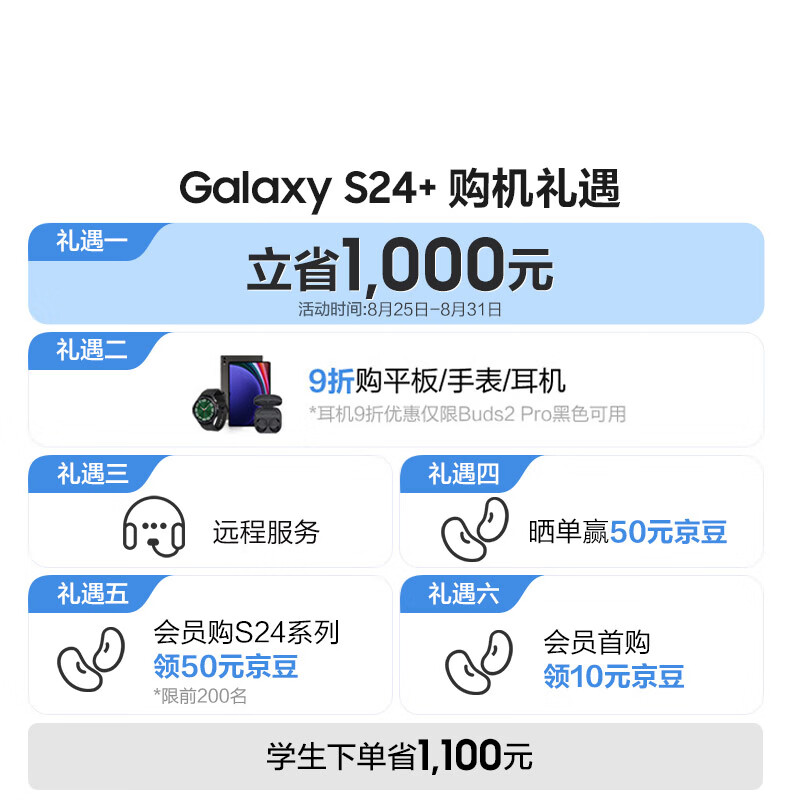 5、收到货啦,等了很久终于下定决心,买了三星S24+,618期间购买的,店家还送了一个耳机,手感很好,颜色很小清新,运行流畅,整体感觉挺好??