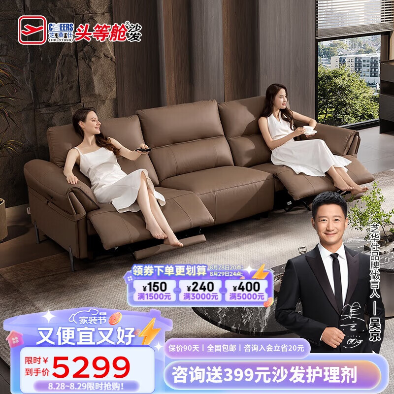芝华仕(CHEERS)头等舱零靠墙意式轻奢真皮功能沙发美拉德客厅芝华士50795棕三价格:5299.00元!